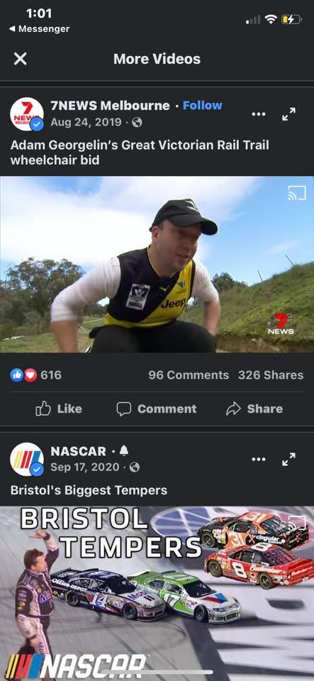 “Hello all, my name is Adam Georgelin. I hope you don’t mind me reaching out to you. I was born with spina bifida, a spinal cord defect. And have always worked full time. I’ve played in the Richmond Tigers AFL wheelchair side for the past 3 seasons. I was a part of the premiership side in 2019, and featured on the men’s AFL banner for the preliminary afl final that year. Last year, I took on a fund raising task of pushing a wheelchair through the Victorian high country 125km over 3 days. I have recently discovered that I have been nominated for a community Australia Day award, and was subsequently announced on Australia Day as the recipient of an honour. With this In mind, I have ambitions of being an advocate for those living with a disability within Australia and potentially around the world. I’d like to think I can be an inspiration, a role model and a mentor to adults and children alike. I believe we need to see more with disability on television.” – Adam Georgelin.